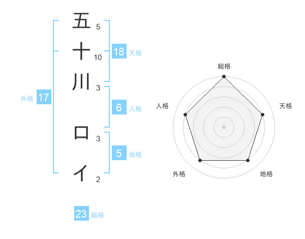 五十川 ロイさんの総格は23画の5点!