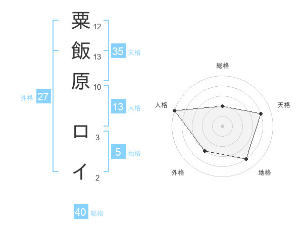 粟飯原 ロイさんを姓名の画数から五運を鑑定