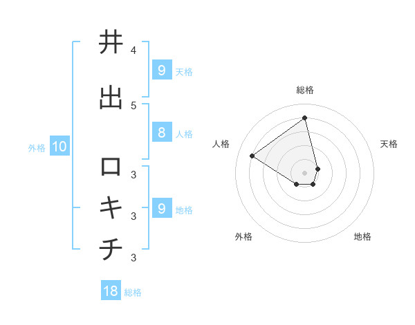 井出 ロキチさんを姓名の画数から五運を鑑定
