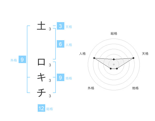 土 ロキチさんの総格は12画の1点!