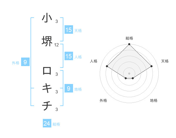 小堺 ロキチさんの天格は15画の4点!
