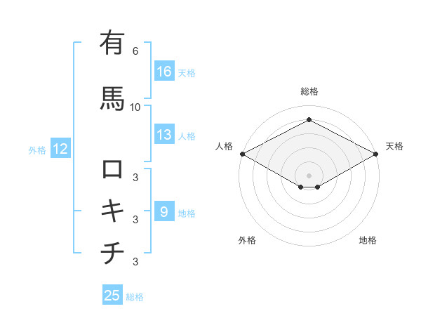 有馬 ロキチさんの天格は16画の5点!