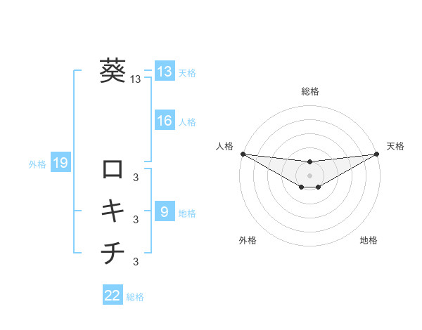 葵 ロキチさんの総格は22画の1点!