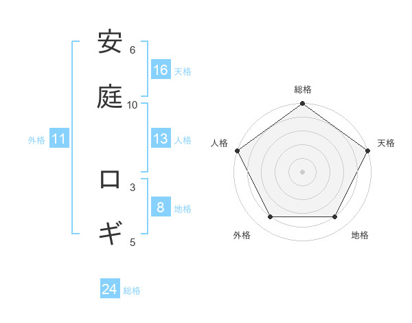 安庭 ロギさんを姓名の画数から五運を鑑定