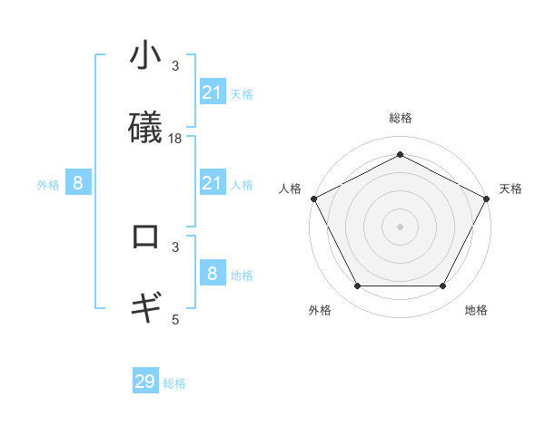 小礒 ロギさんの天格は21画の5点!