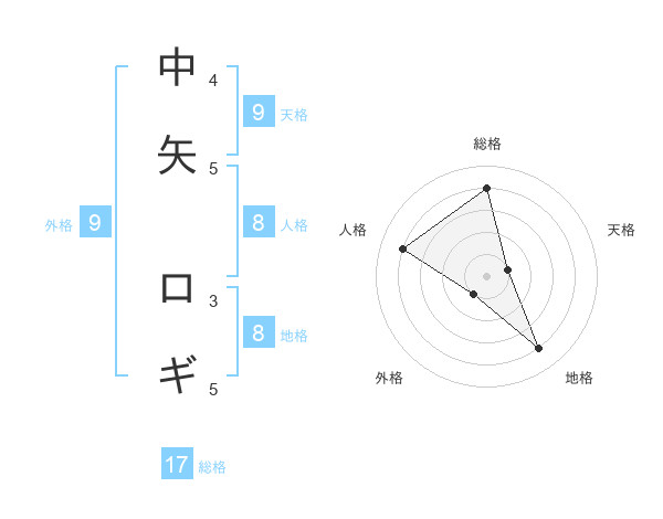 中矢 ロギさんの総格は17画の4点!