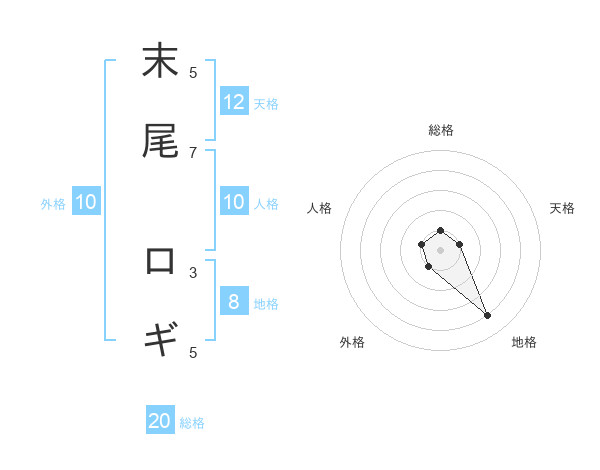 末尾 ロギさんの総格は20画の1点!