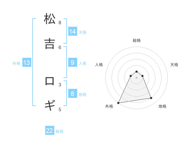 松吉 ロギさんの外格は13画の5点!