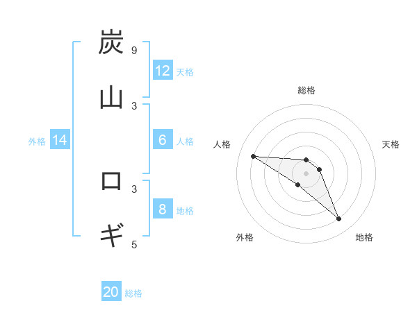 炭山 ロギさんの総格は20画の1点!