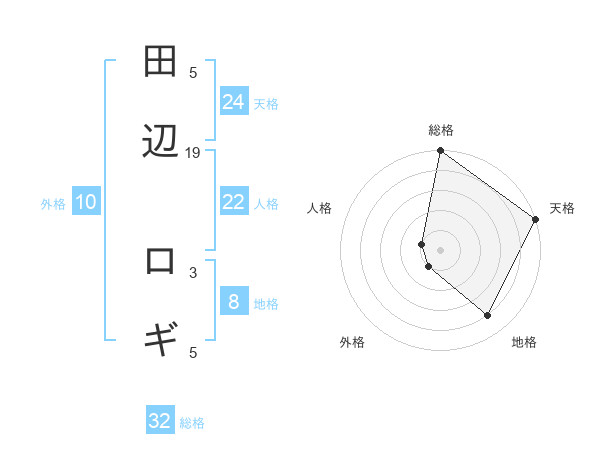 田辺 ロギさんの総格は32画の5点!