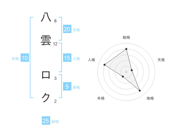 八雲 ロクさんの天格は20画の1点!