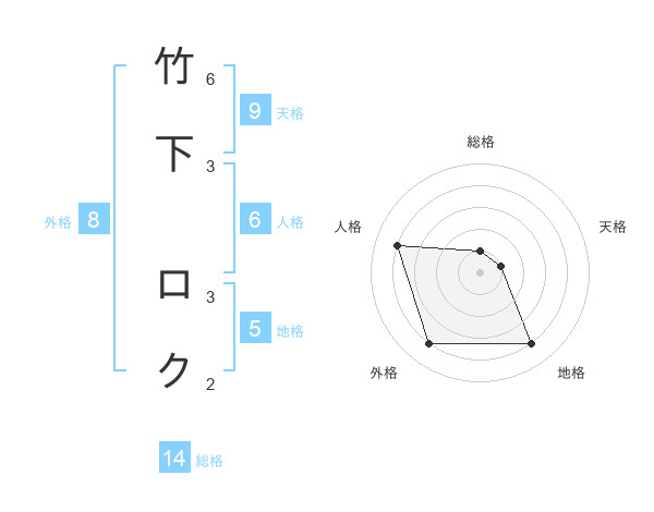 竹下 ロクさんを姓名の画数から五運を鑑定