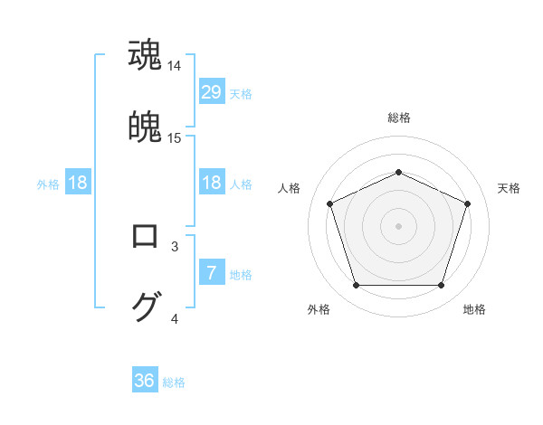 魂魄 ログさんの総格は36画の3点!
