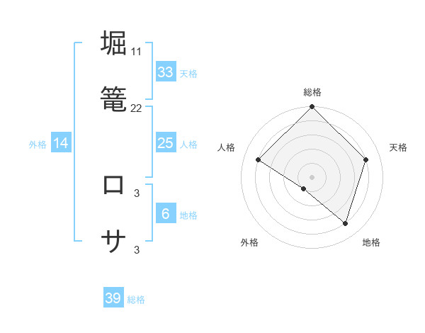 堀篭 ロサさんを姓名の画数から五運を鑑定