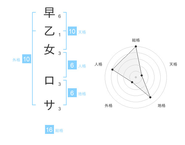 早乙女 ロサさんを姓名の画数から五運を鑑定