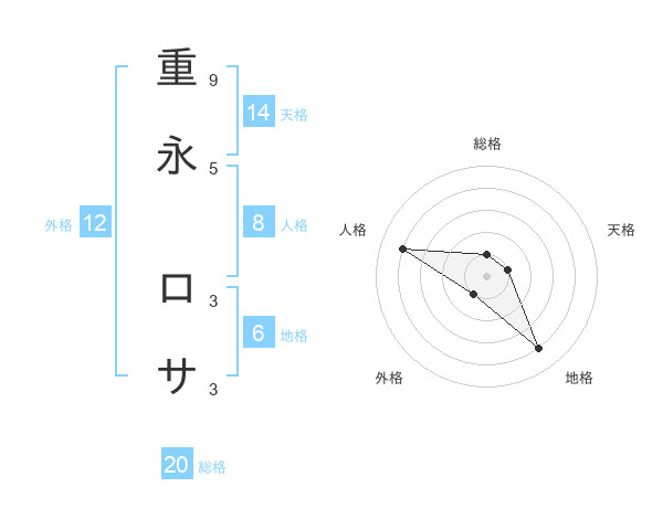 重永 ロサさんの外格は12画の1点!
