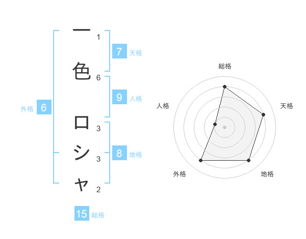 一色 ロシャさんを姓名の画数から五運を鑑定