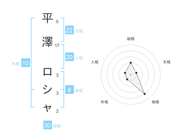 平澤 ロシャさんを姓名の画数から五運を鑑定