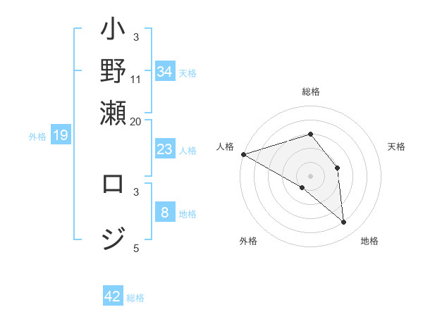 小野瀬 ロジさんの総格は42画の3点!