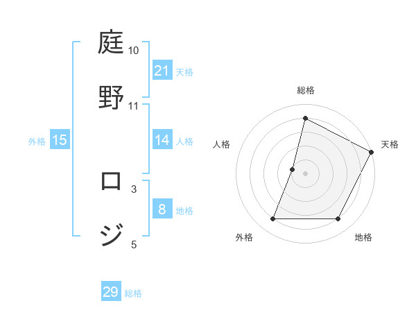 庭野 ロジさんを姓名の画数から五運を鑑定