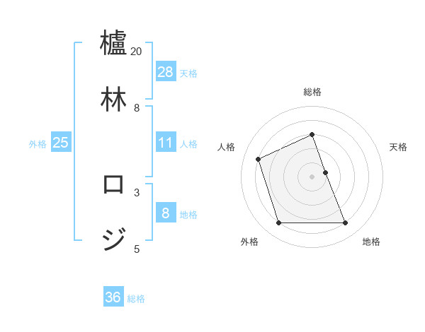 櫨林 ロジさんの外格は25画の4点!