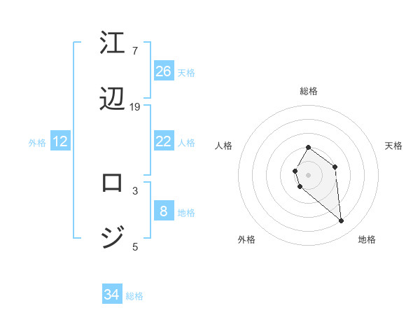 江辺 ロジさんの地格は8画の4点!