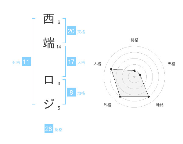 西端 ロジさんの総格は28画の1点!