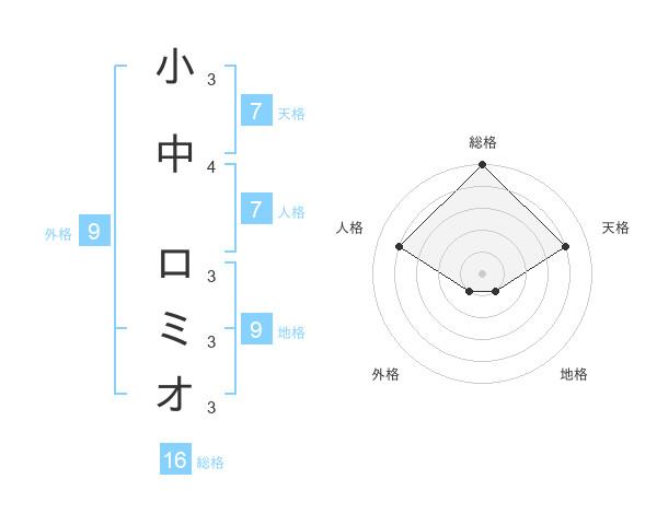 小中 ロミオさんを姓名の画数から五運を鑑定