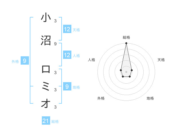 小沼 ロミオさんを姓名の画数から五運を鑑定