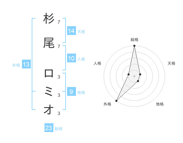 杉尾 ロミオさんの総格は23画の5点!