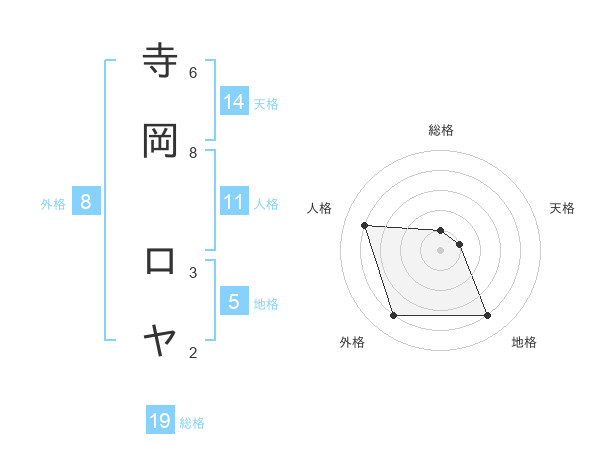寺岡 ロヤさんの外格は8画の4点!