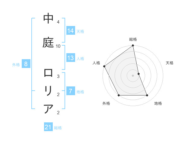 中庭 ロリアさんを姓名の画数から五運を鑑定