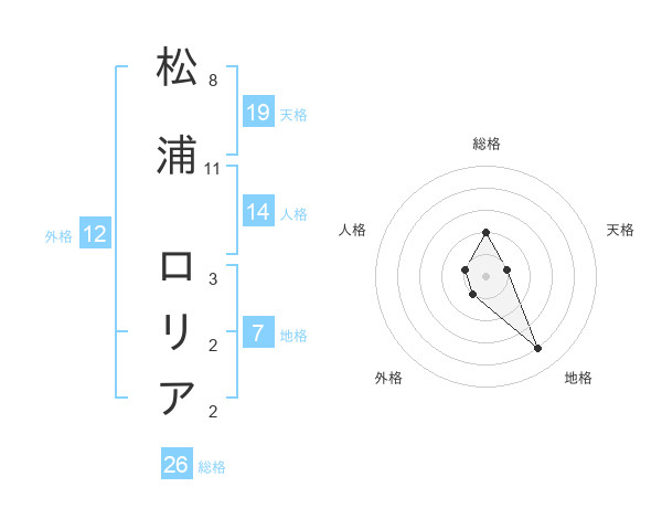 松浦 ロリアさんを姓名の画数から五運を鑑定