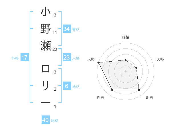 小野瀬 ロリーさんの外格は17画の4点!