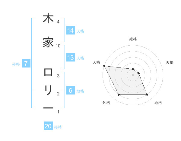 木家 ロリーさんの総格は20画の1点!