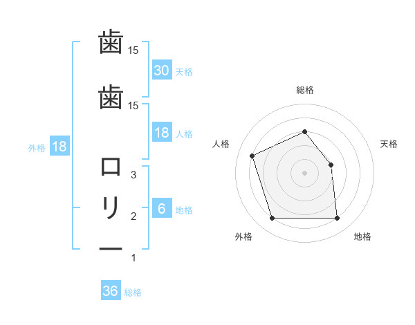 歯歯 ロリーさんの総格は36画の3点!