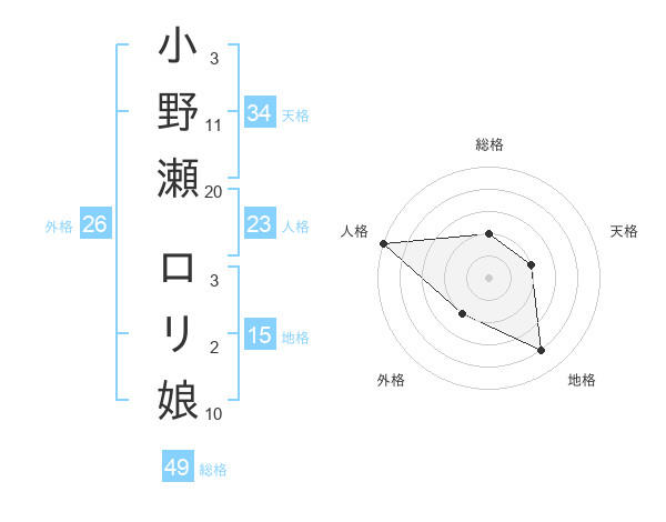 小野瀬 ロリ娘さんの総格は49画の2点!