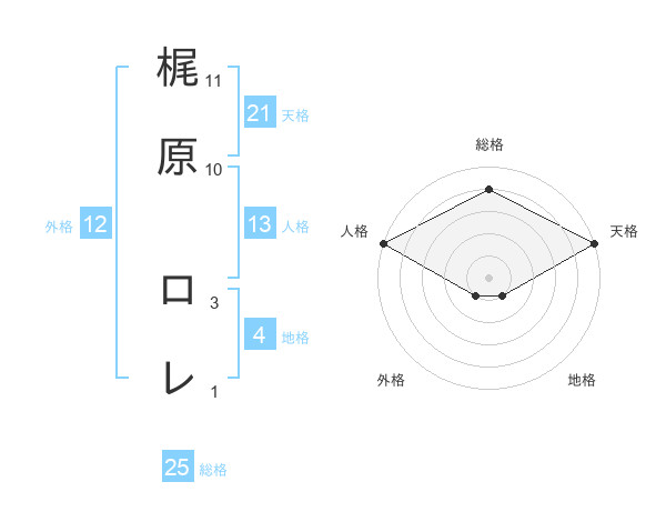 梶原 ロレさんの天格は21画の5点!