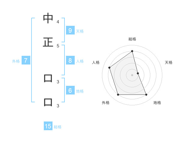 中正 ロロさんの総格は15画の4点!