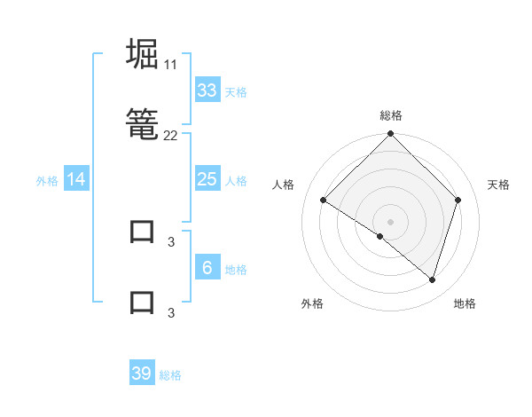 堀篭 ロロさんの総格は39画の5点!