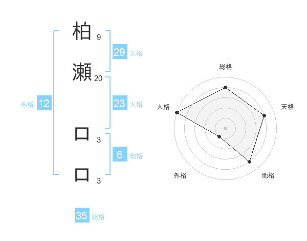 柏瀬 ロロさんの総格は35画の4点!