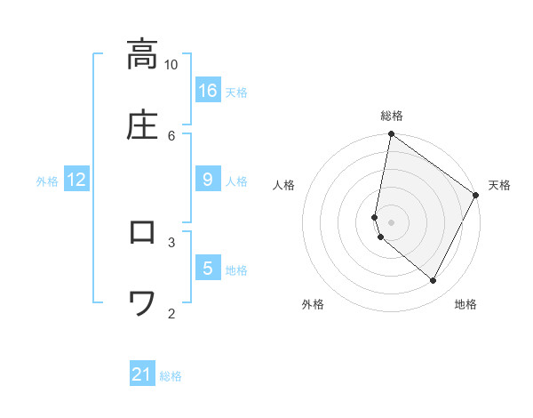 高庄 ロワさんの総格は21画の5点!