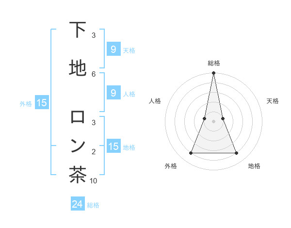 下地 ロン茶さんを姓名の画数から五運を鑑定