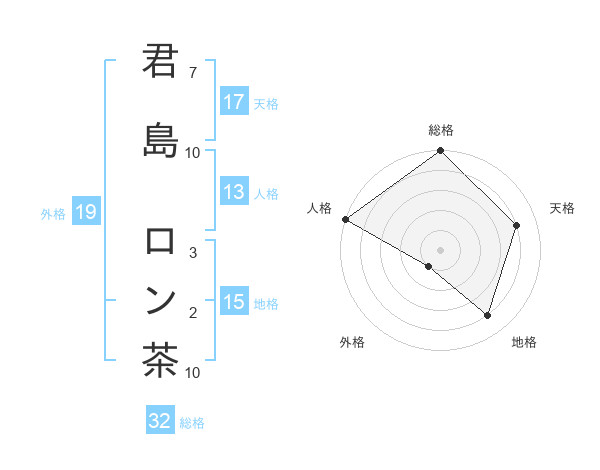 君島 ロン茶さんの天格は17画の4点!