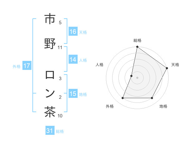 市野 ロン茶さんの総格は31画の5点!