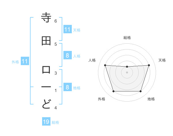 寺田 ローどさんの天格は11画の4点!