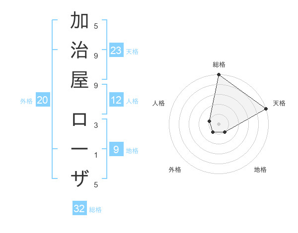 加治屋 ローザさんの天格は23画の5点!