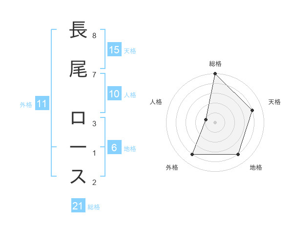 長尾 ロースさんを姓名の画数から五運を鑑定