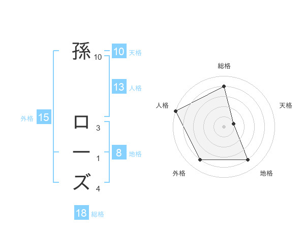 孫 ローズさんの総格は18画の4点!