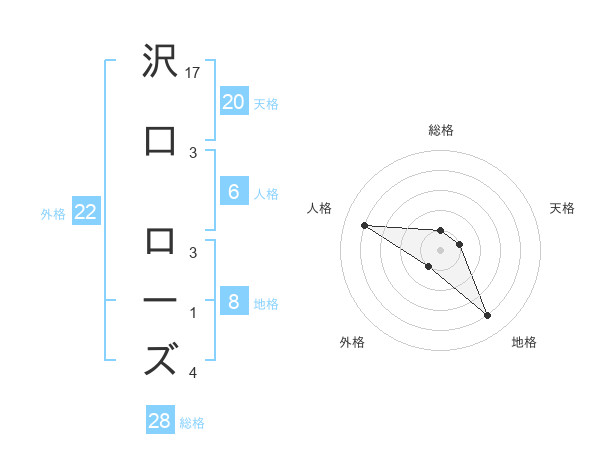 沢口 ローズさんの天格は20画の1点